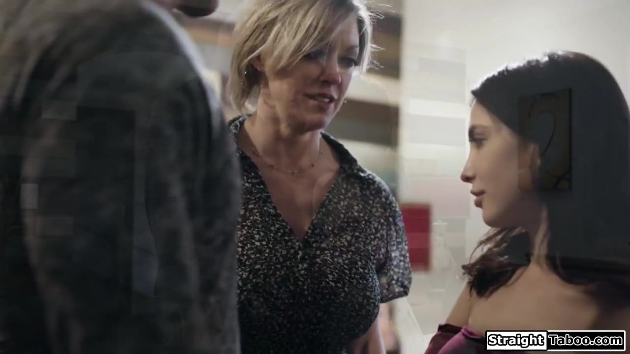Teen stepdaughter dominates mature stepmom and stepdad to have a 3some.The petite babe deepthroats his big cock and gets fucked as she licks the busty milf shaved pussy.Then the small tits brunette facesits the big tits blonde as the man bangs her