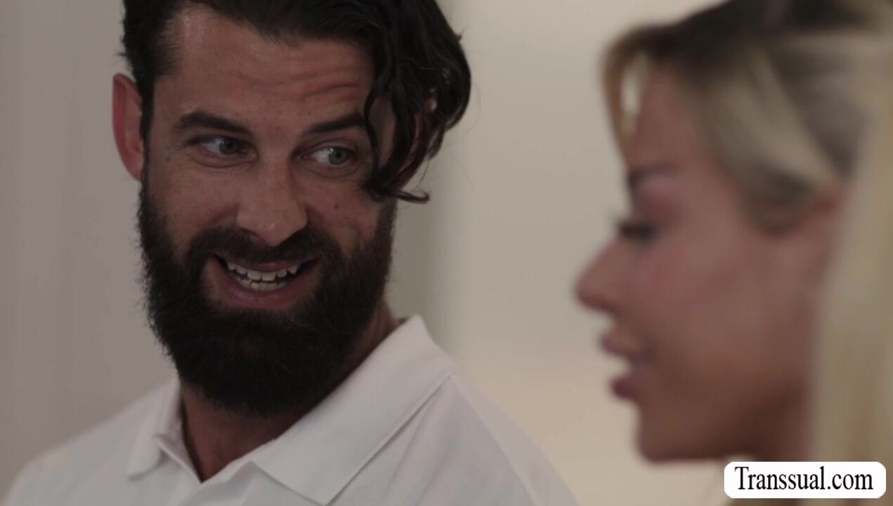 Gorgeous blonde TS seduces her stepbrother by doing sexy dance in front of him.After that,they start kissing each other and she then throats his hard big cock passionately.In return,her stepbrother fucks her tight ass so deep and hard.
