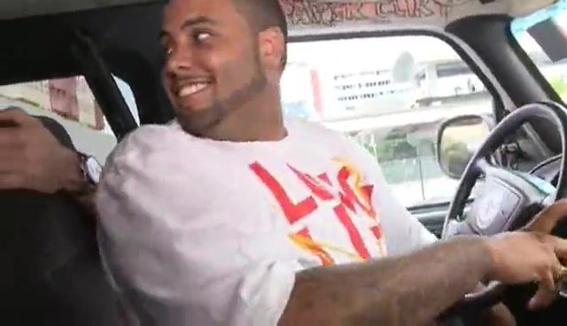 Three guys pick up a girl and one of them fuck her in the van. The teen beauty sucks a cock with pleasure and swallows the cum in the end.