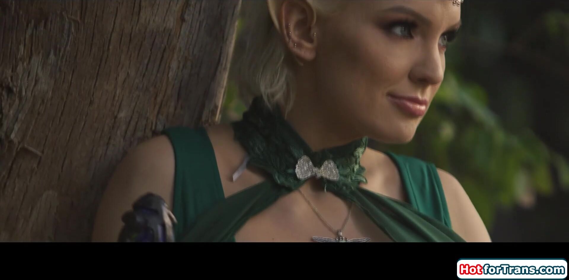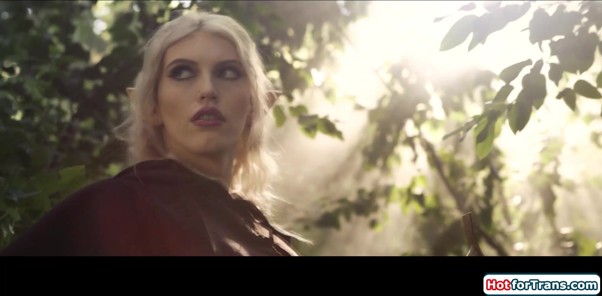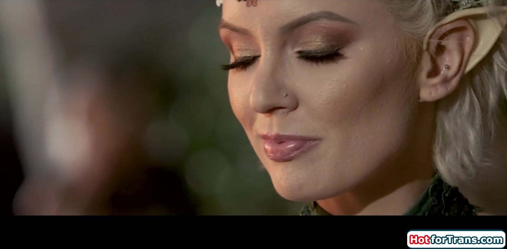 Busty shemale elf Izzy Wilde spots an unknown elf in her woods.Big tits blonde Kenzie Taylor invites the trans over and the couple kiss.The milf sucks the tgirls boobs and deepthroats her tranny cock.The ts licks pussy and doggystyle bangs the babe