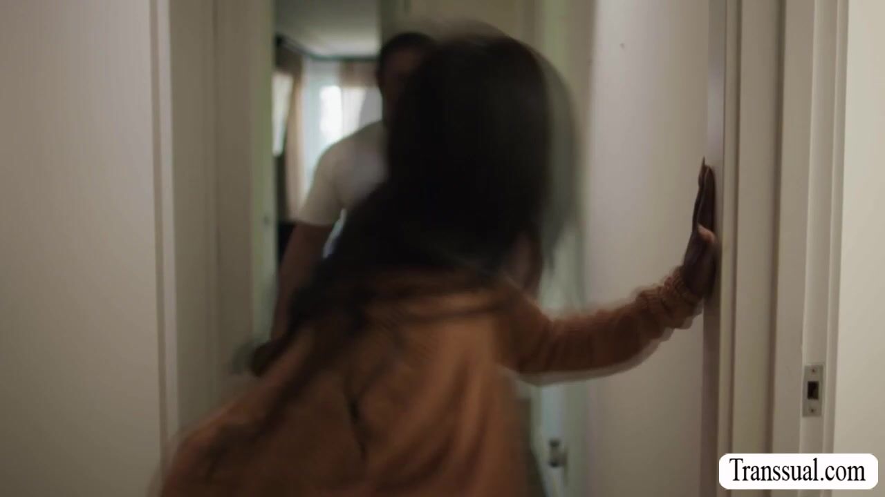 Horny Ebony saw her TS roommate masturbating on her room and she then calls their guy roommate and have some plan.They intervene their shemale roommate and she starts toying her ass using big dildo.After that,her guy roommate do the finishing.