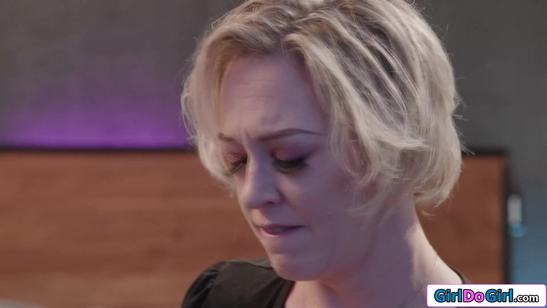Petite babe is attracted to her busty mature roommate and gives her a kiss.Its her first lesbian crush and she enjoys when the big tits milf sucks her boobs and gets her hairy pussy licked.Excited to taste her first pussy she fingers and gives oral
