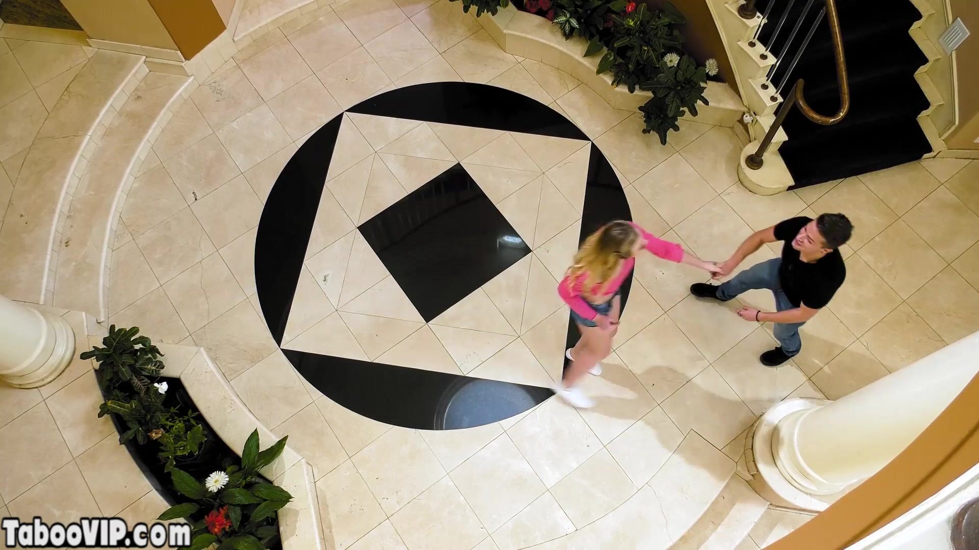 Petite blonde teen with small tits is giving a blowjob to her BF then he is fucking her hard MILF stepmom hearing her stepdaughter moaning on a big dick so she is spying on them during masturbating