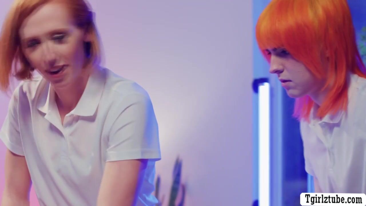 Two redhead TS masseuse give their favorite sexy client a passionate massage.After that,they get horny and they start kissing her.Next is,they let her throat their hard shecock and in return,they lick her pussy before they fuck it so hard.
