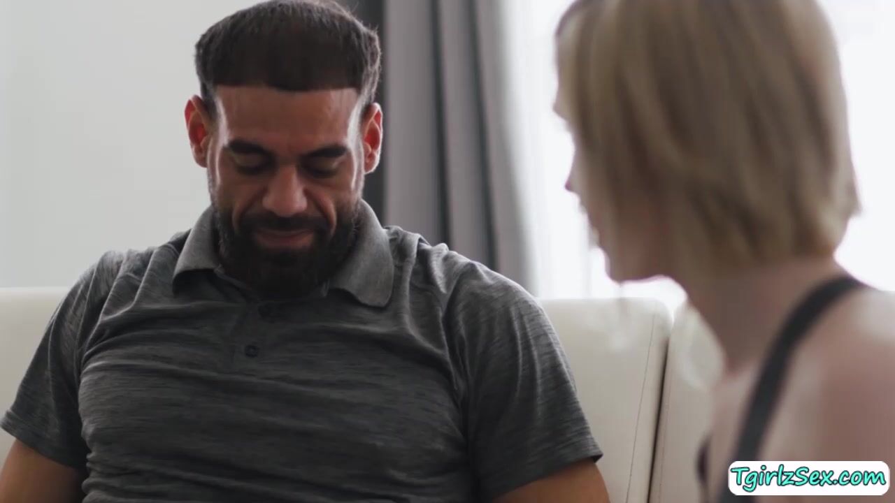 Smalltits transsexual Ella Hollywood bids goodbye to her hunk stepdad Ricky Larking but the kiss ignites a heated sexual encounter instead. The two take turn deepthroat blowjob their bigcocks before he rimjobs the blonde tbabes asshole and anal barebacks.