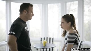 Officer makes petite sisterinlaw suck his big cock in exchange of keeping her secrets.The uniformed guy deepthroat facefucks her and the small tits babe gets banged rough as he chokes her.Then the cop fucks the cheating brunette as she rides his dick