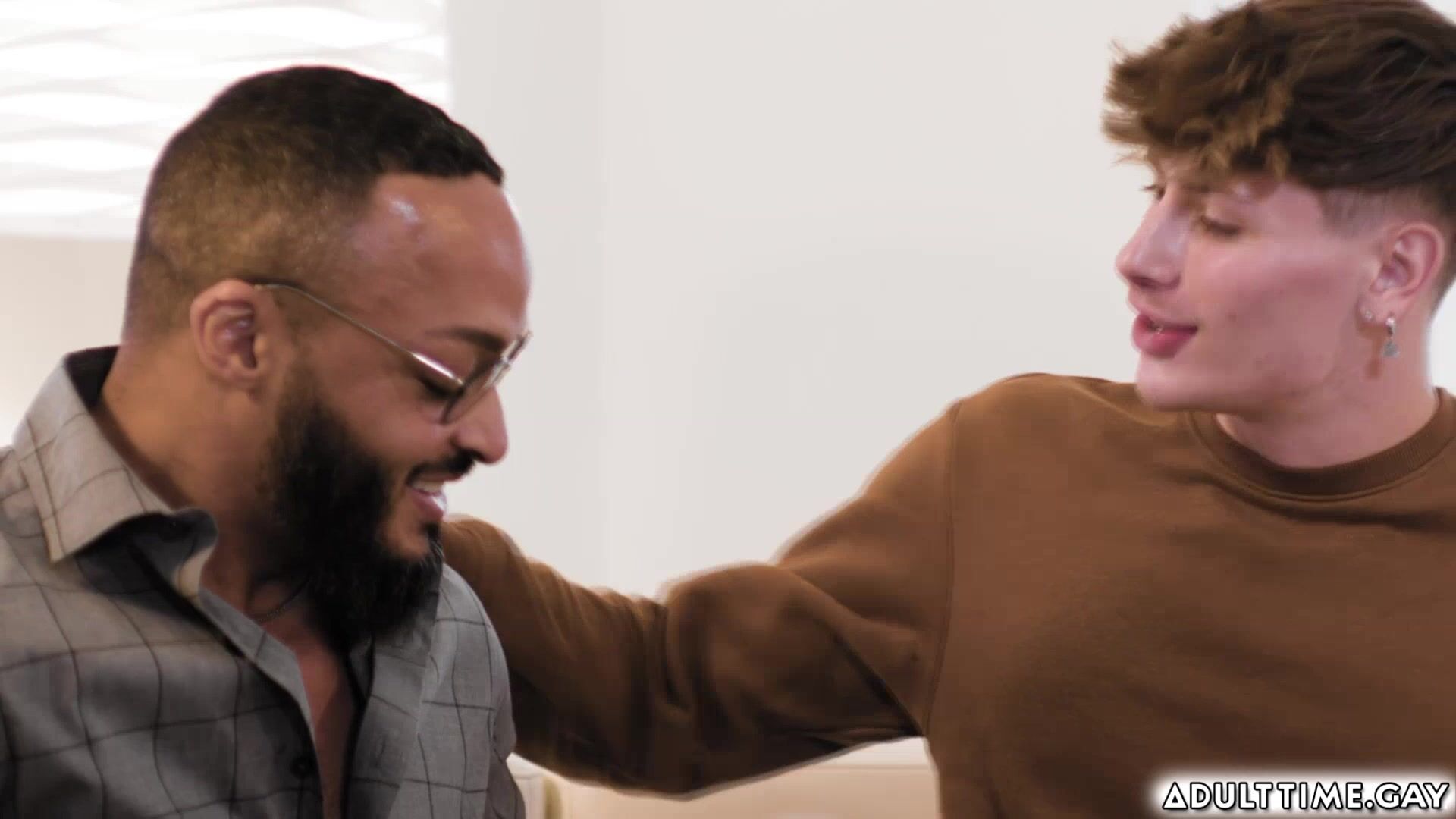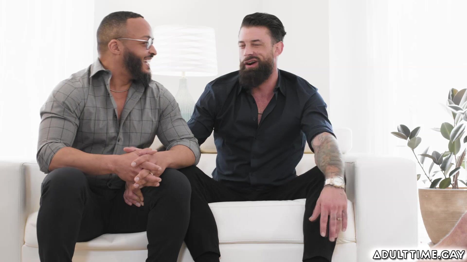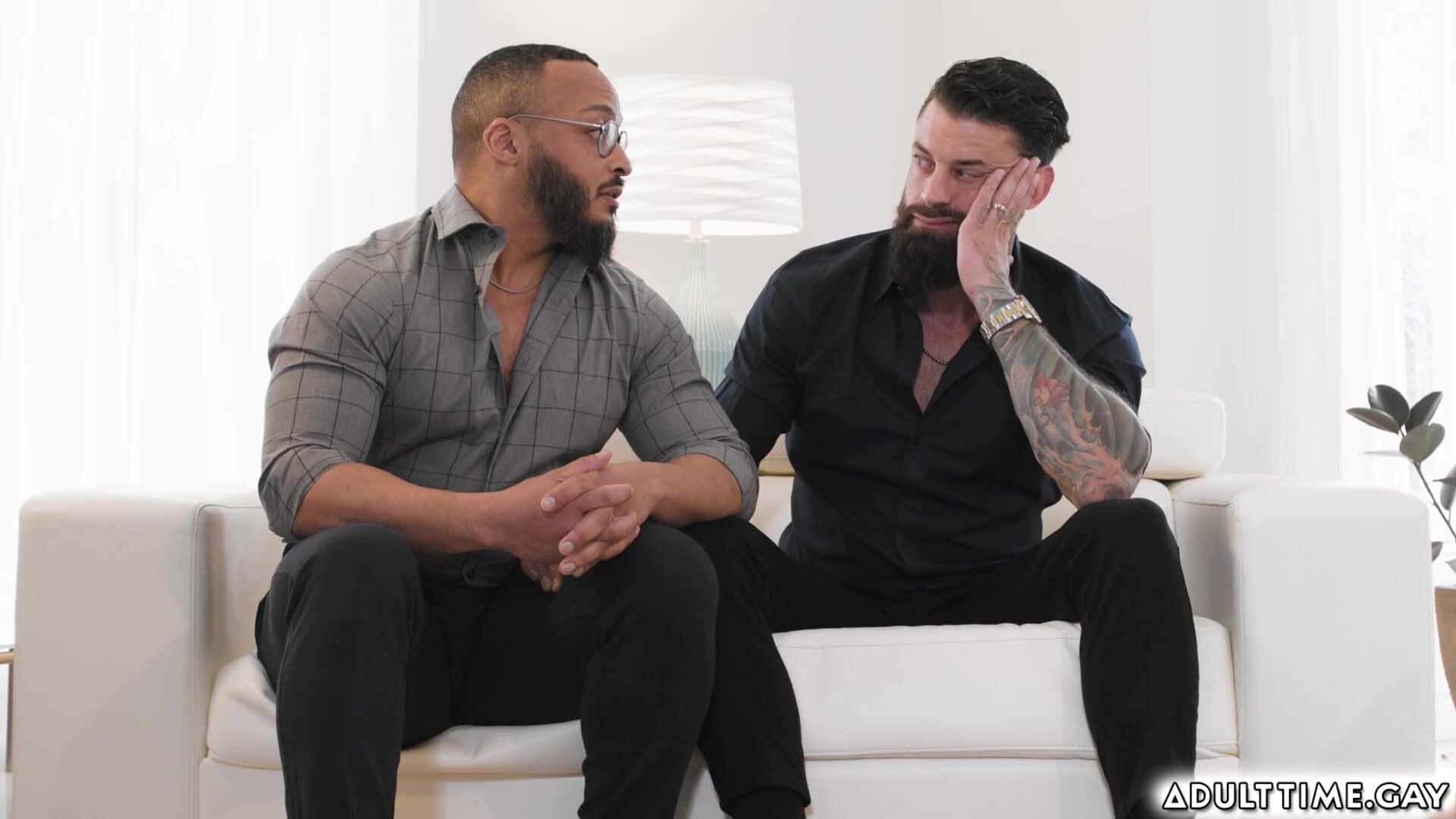 Gay boyfriends Cyrus Stark and Zak Bishop invited over to their college professor Dillon Diaz and husband Alpha Wolfe. They all chat until they come up with open relationship and switching partners. Both teens are shy at first but then agreed later on and start kissing and goes to each DILF to try