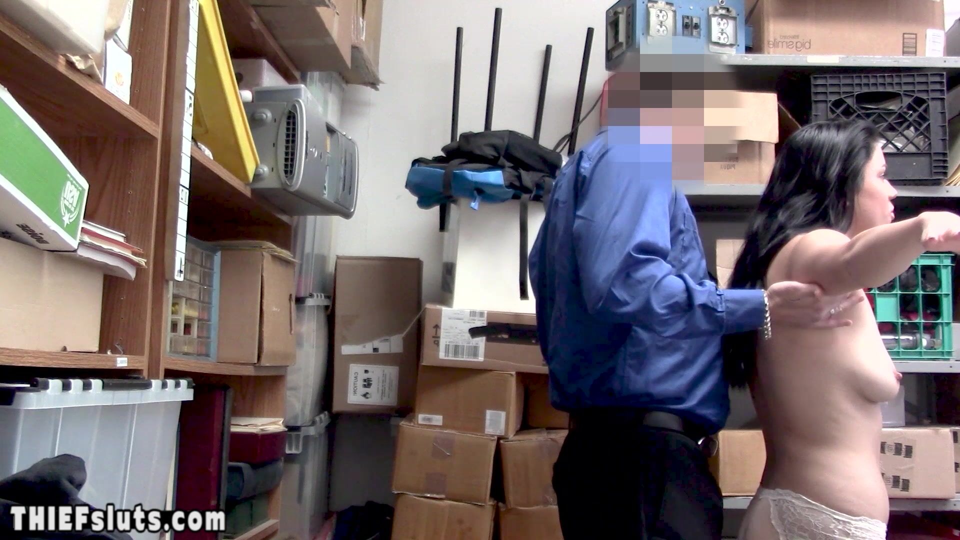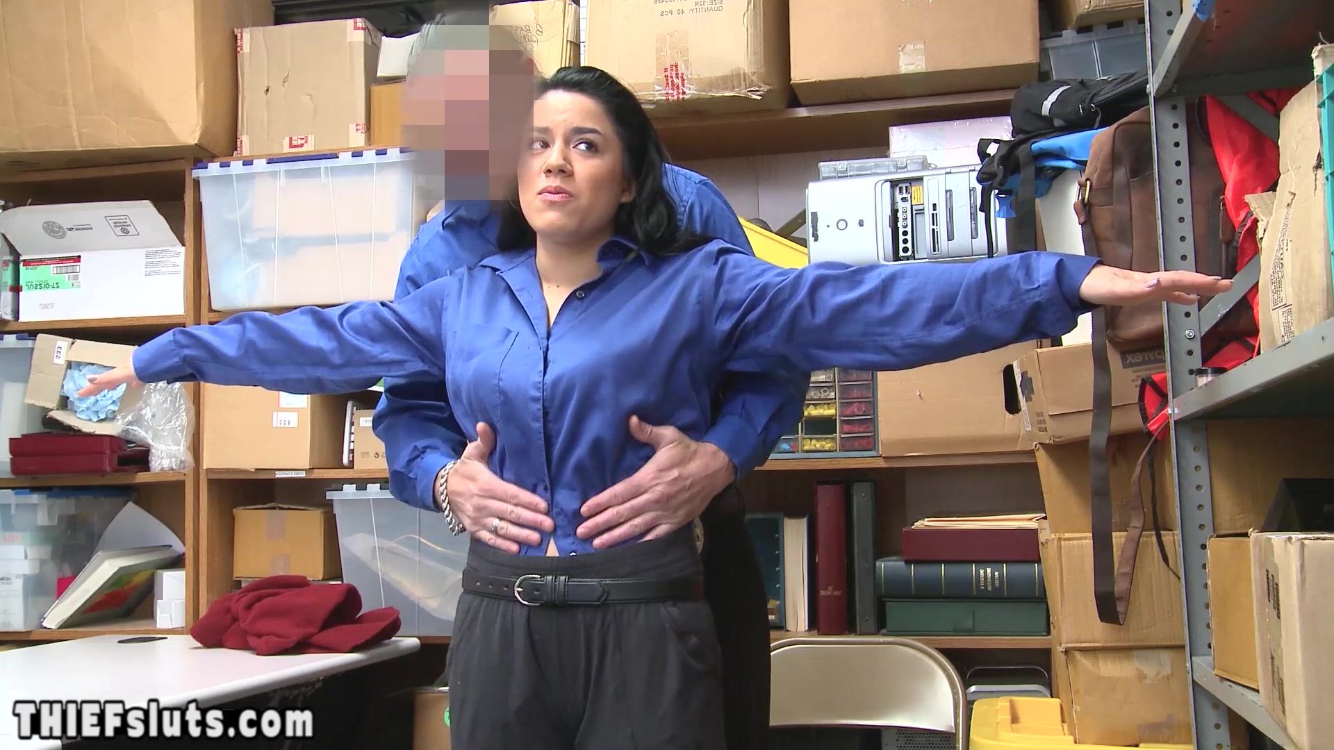Hot asian teen Monica Sage with big natural tits used a guise as an undercover LP officer to try and trick security guard but she go caught and the angry guard ordered her to fuck his big dick after he banged her pretty face
