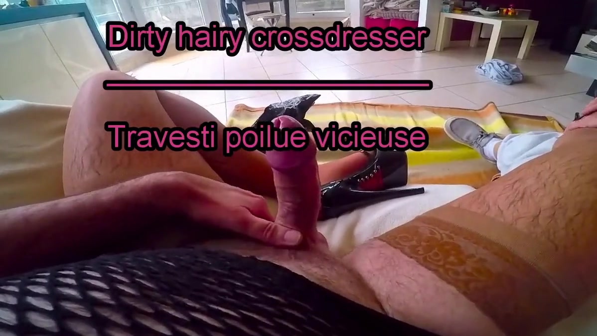Dirty hairy crossdresser make masturbation, sucking and pissing with dirty old hairy man