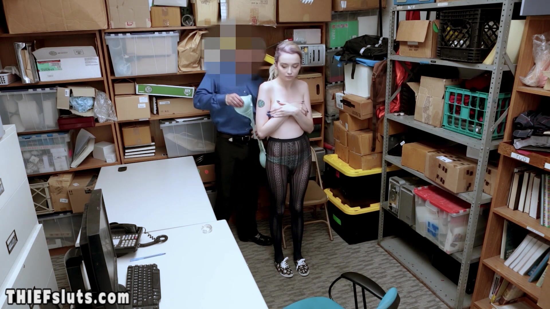 Cooperative teen thief Lexi Lore fucking a guards big dick