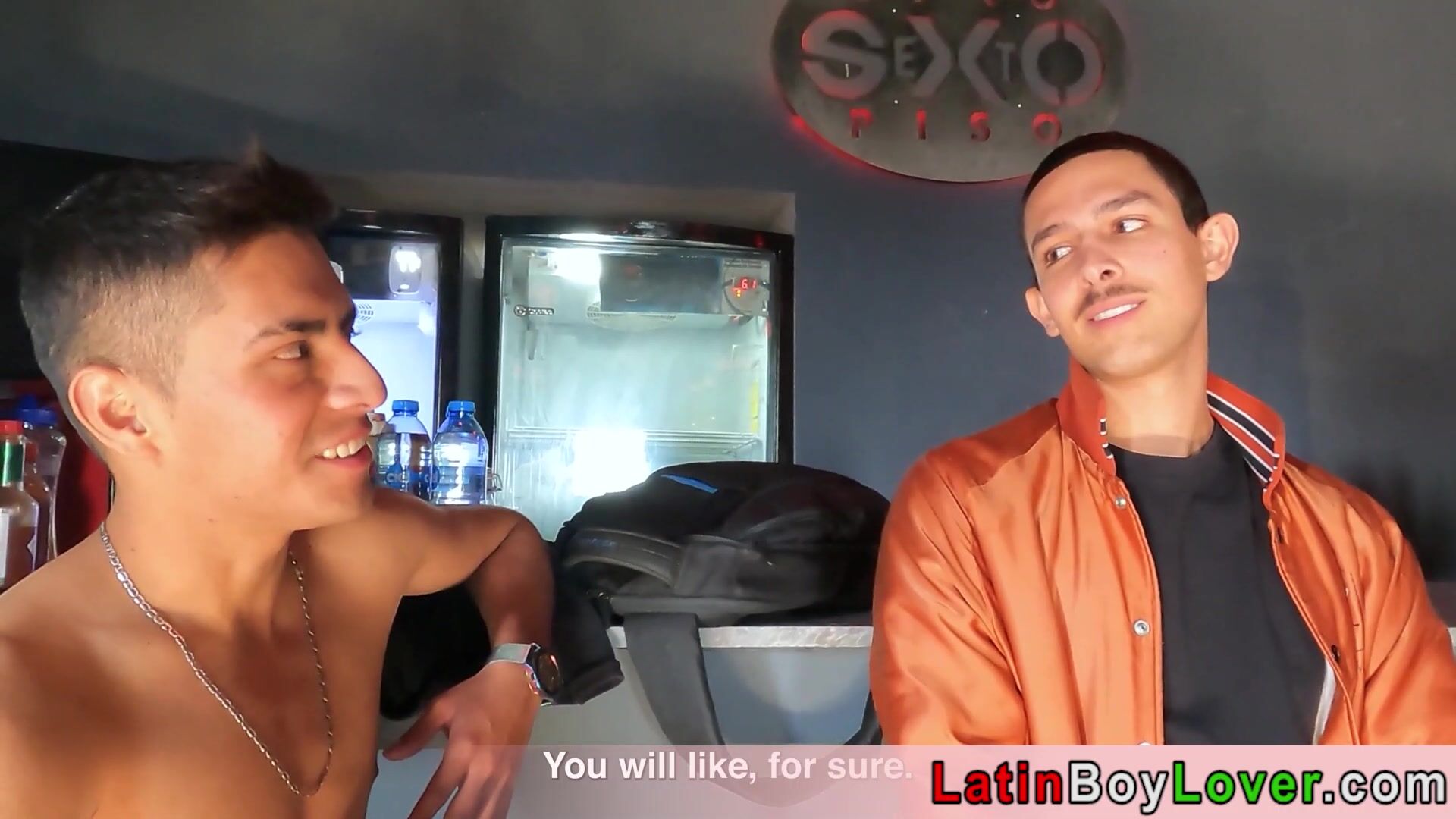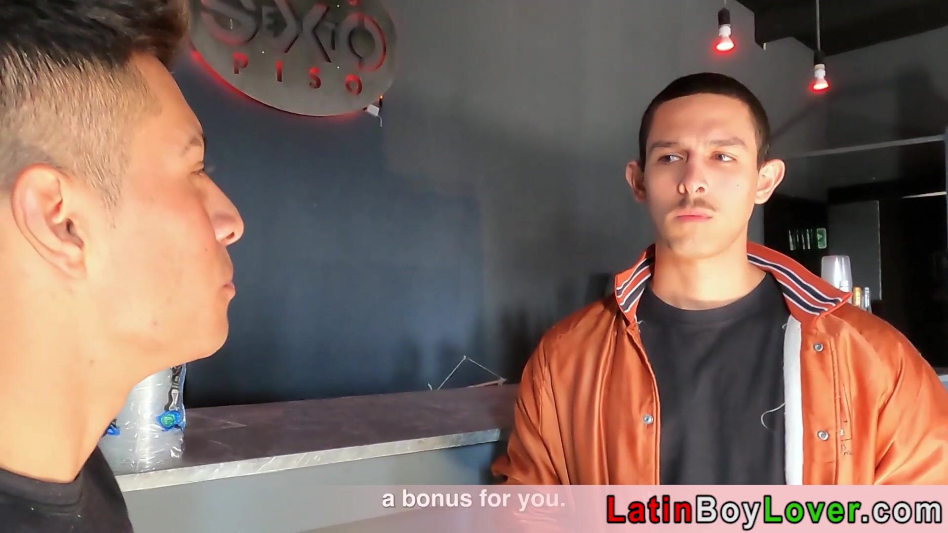 Cute amateur blonde latin teen Angel Crush is sucking his mates big cock the he bends over and the offers his bubble butt for a nice bareback fuck to the inked stud Cain Gomez