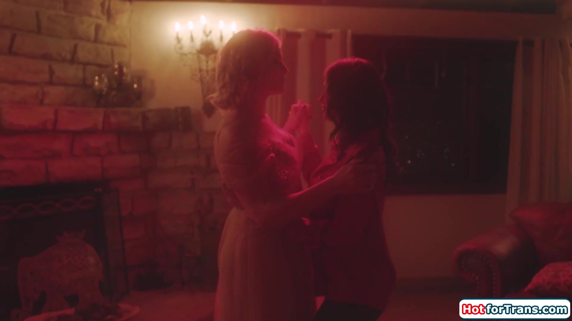 Trans Lucy Hart kisses her dance instructor Maddy May.The busty tattooed babe convinces the tgirl shes worth it and kisses her before sucking her big boobs.The blonde shemale gets a handjob an is deepthroated.The ts licks pussy and bangs the brunette