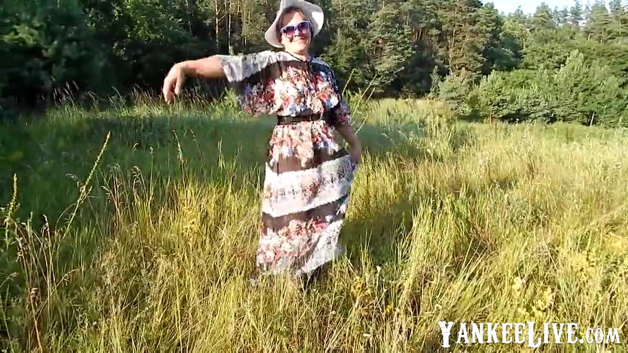 Hairy mature 42 years old flashing outdoor in transparent dress