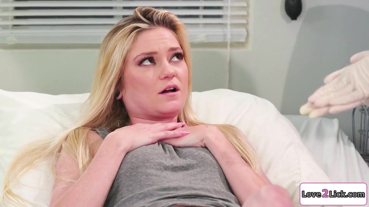 Big tits doctor asks a petite patient to undress so she can examine and finger her shaved pussy.The busty milf gives oral sex and the babe gets horny.They kiss and the older woman sucks her small tits.The blonde rims her as she masturbates her cunt