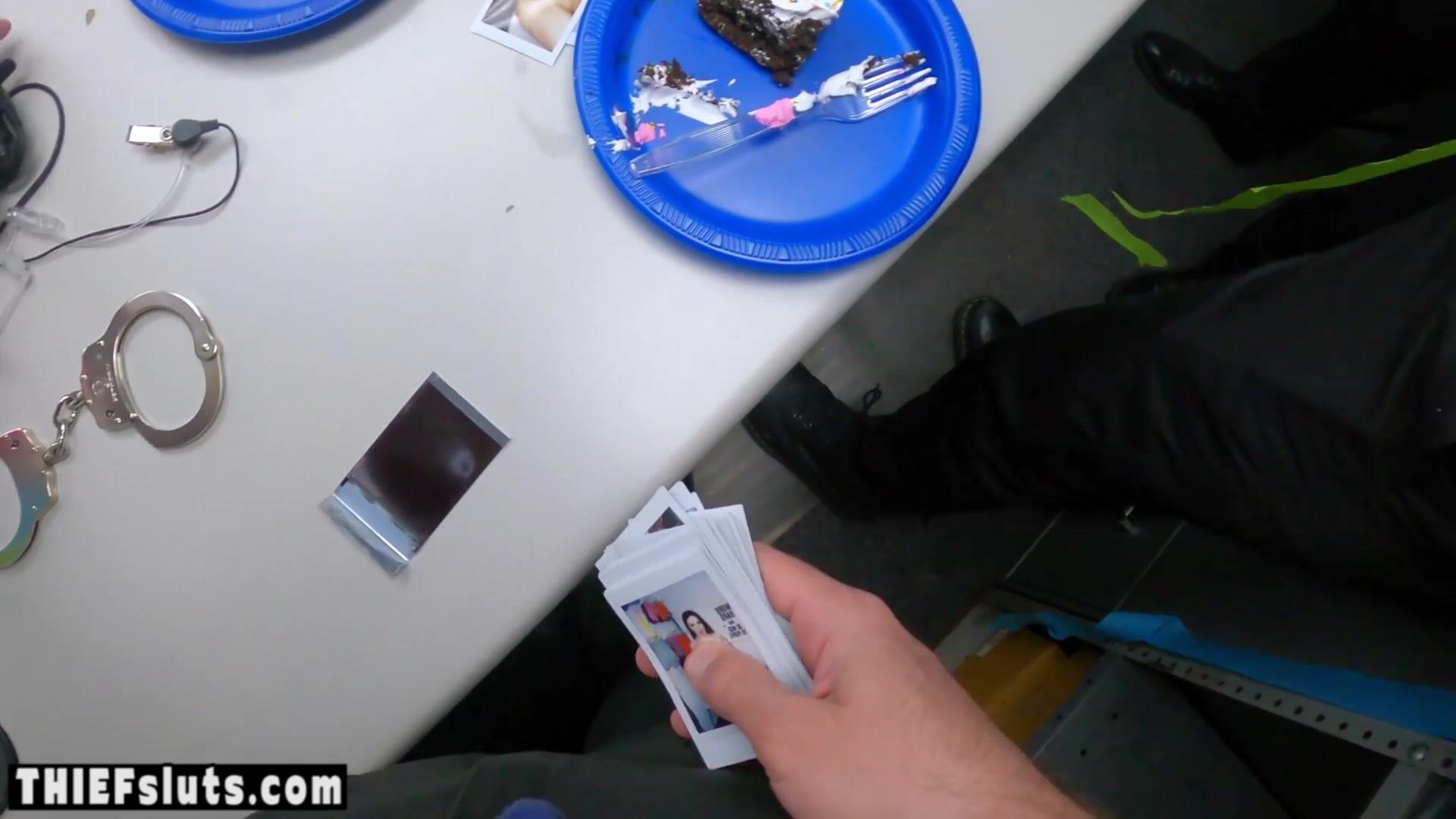 LP officers are celebrating birthday and the guys take a scared petite blonde teen thief Minxx Marley with small tits to surprise their associate then the five guards are group fucking the hot slut roughly