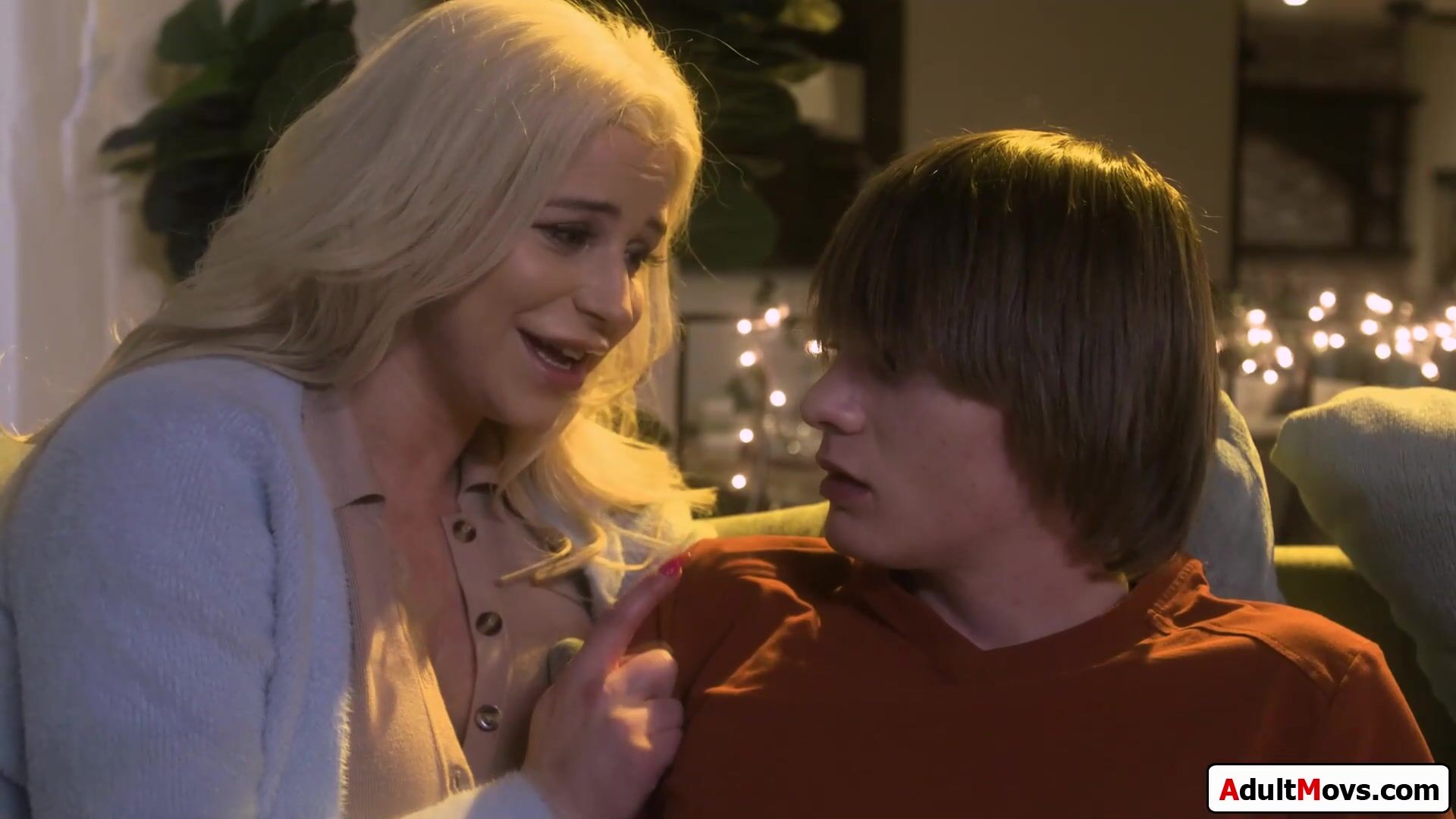 Busty milf stepmom lets her stepson snuggle on last time and takes out her big tits for him to suck.The big boobs cougar spreads her legs so he can eat out her pussy.The blonde deepthroats his big cock to make it rockhard before he bangs her