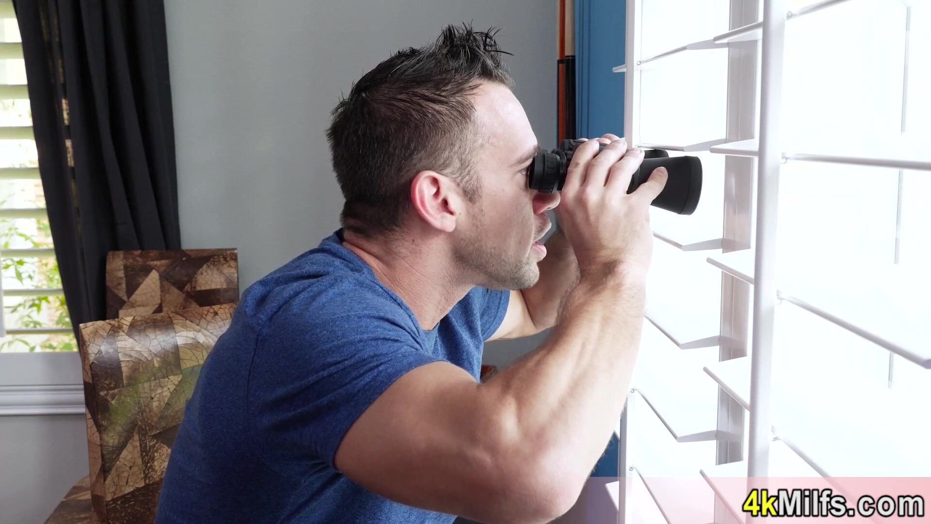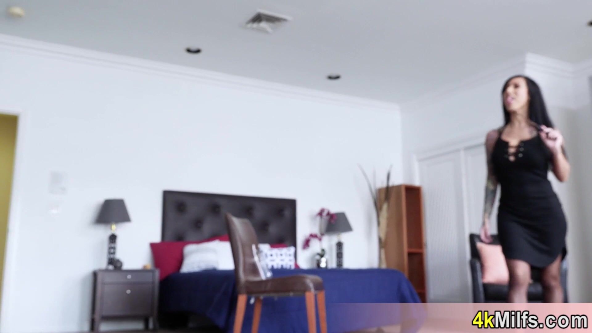 Hot inked brunette MILF Lily Lane with big boobs is taking off slutty outfit and the neighbor is spying on her She notices that and visits him She takes his big cock and after a deepthroat blowjob she asks him to fuck her pussy and ass roughly