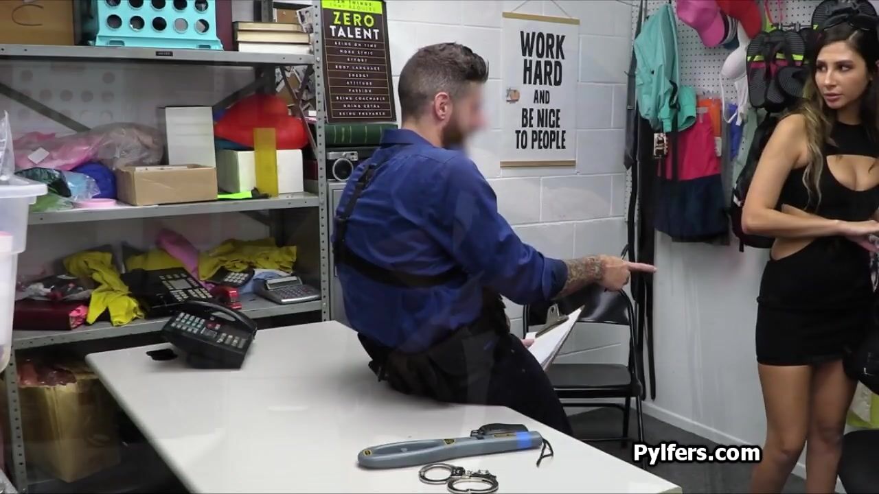 Smoking hot brunette with amazing tits and booty ends up for questioning and strip search. But the security guard wants a lot more from her!