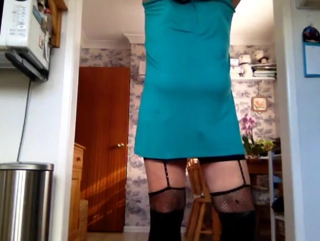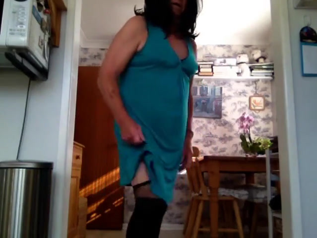 Old sissy sub in a dress, which he removes to display his underwear.