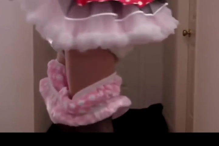 Diapered sissy princess in pretty red dress gets triple diapers to insure no leaks