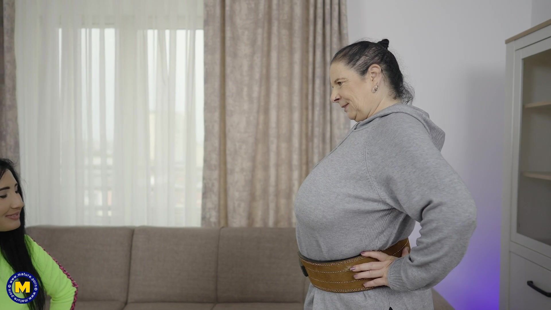 Redhead helps bff seduce big tits stepmom to lick her pussy