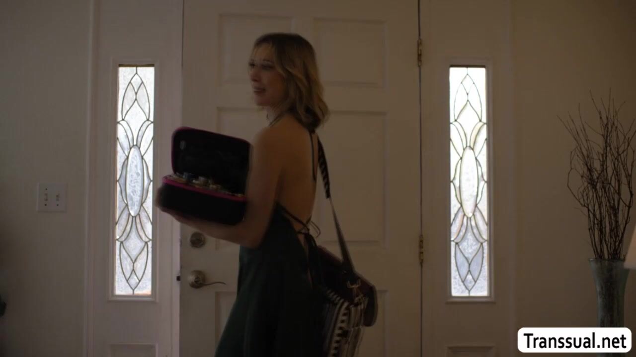 Oil seller knocks on TS customers door and seduces her by letting her saw her nipples.After that,she gives her TS customer a tits massage and she gets horny.She starts licking my pussy and fucks it so deep and hard.
