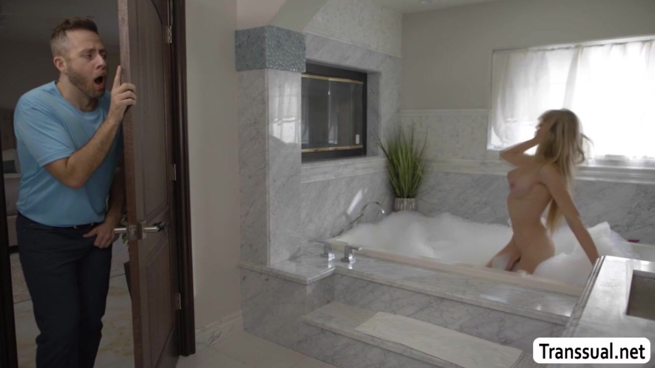 Big tits ladyboy Tori Easton is in the bathroom taking a bath.After that,husbands friends starts sneaking inside the bathroom and they start kissing.Next is,she throats his dick first and lets him fuck her asshole so hard.