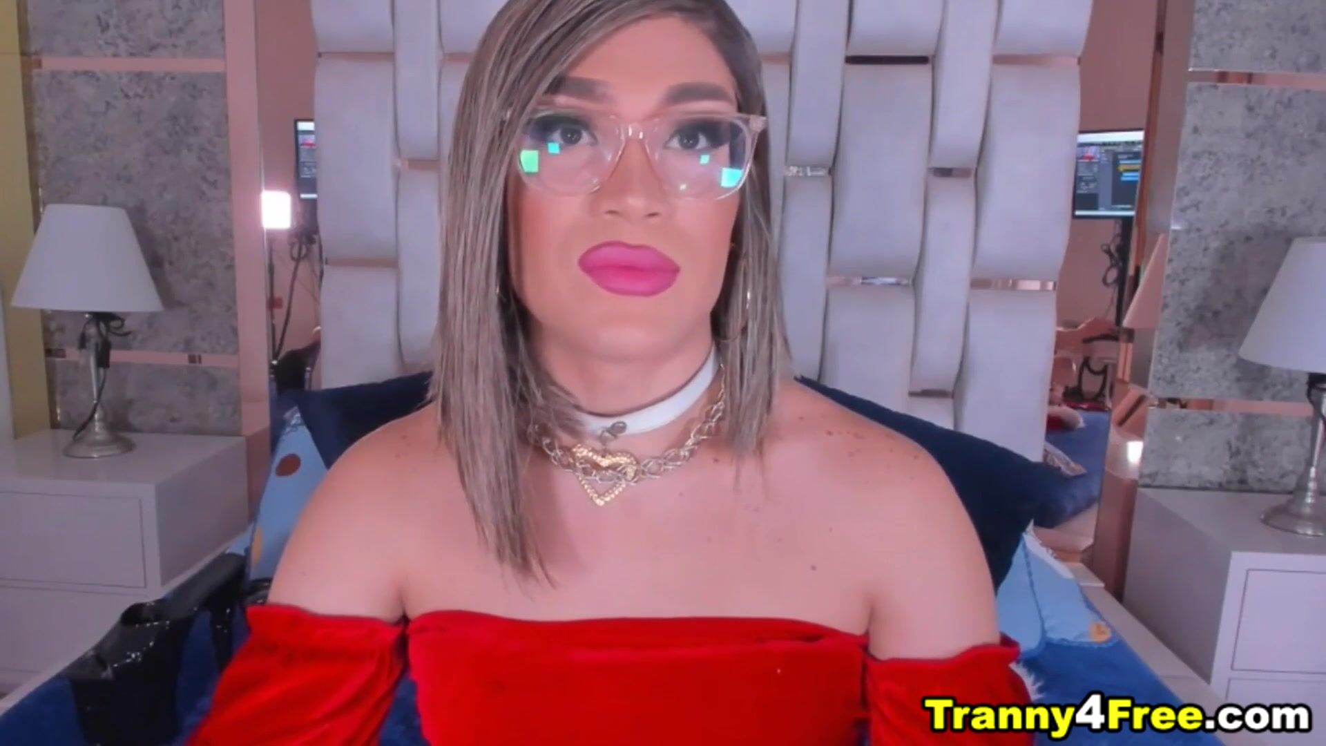 This adorable Shemale twerks her big dick