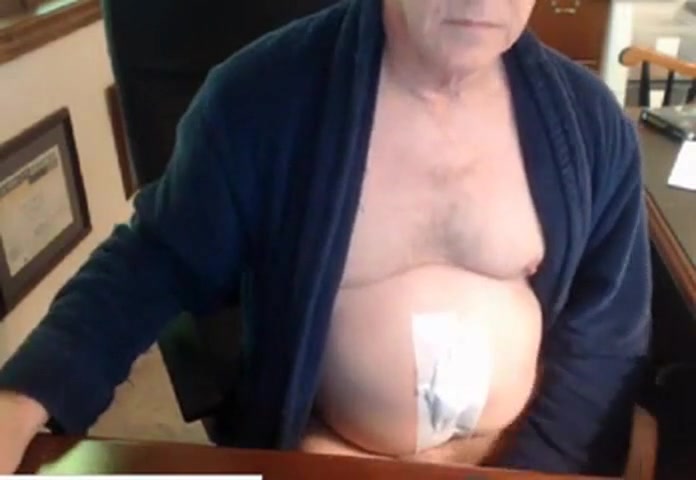 submissive grampa wanking (until fedex guy turns up to be sucked off) while wife is downstairs chatting with friend