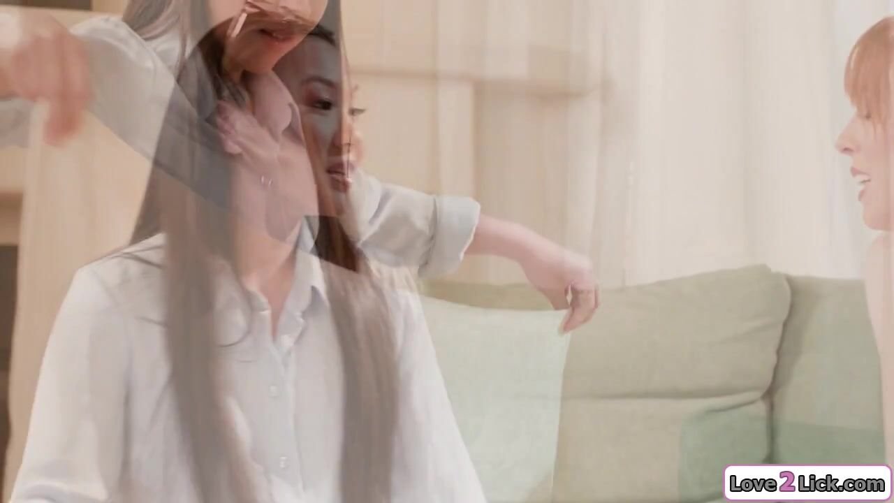 Asian tutor teaches a redhead to squirt and licks her pussy