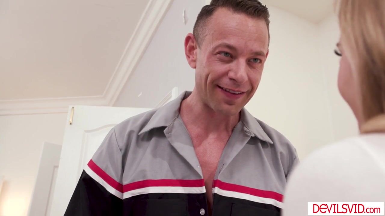 Blonde teen flirting with the plumber after paying him.She asks if he loves anal sex.The guy replies with a yes and starts kissing her.He sucks her pretty nipples and licks her shaved pussy.The petite babe gives him blowjob before getting ass fucked