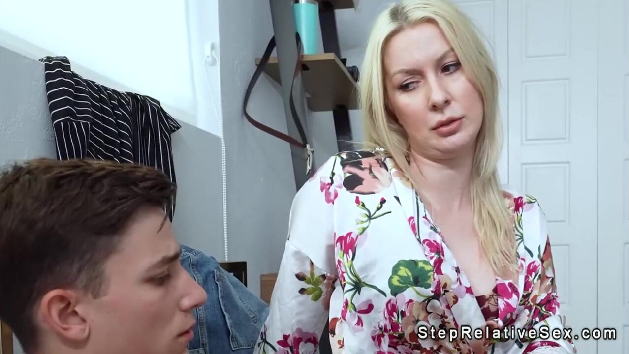 Blonde Milf stepmom fucks stepson with boner