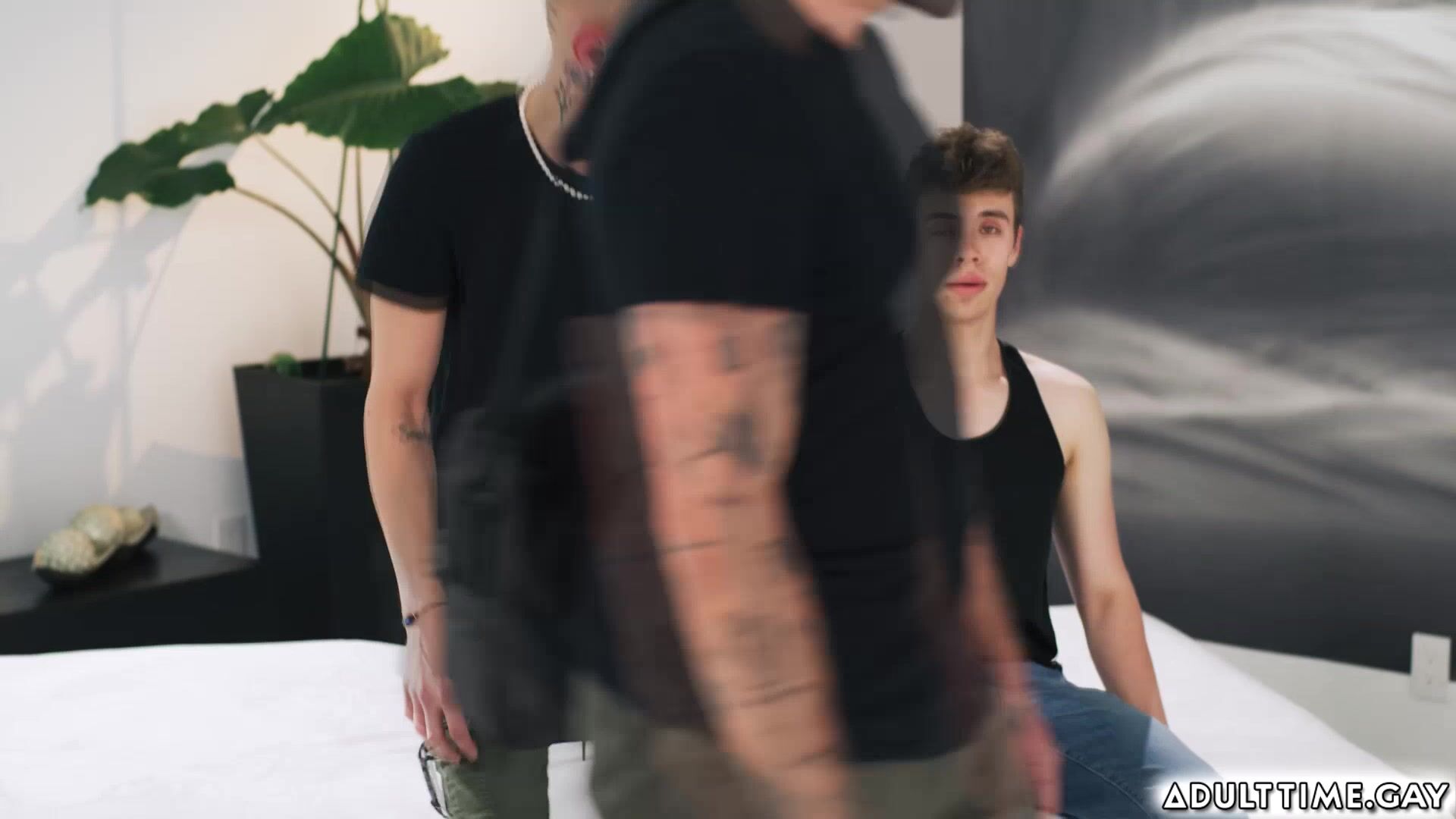 Twinks Harley and Adam sharing Chris Damned huge cock