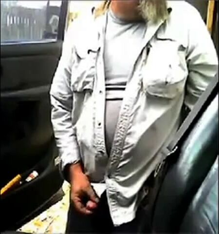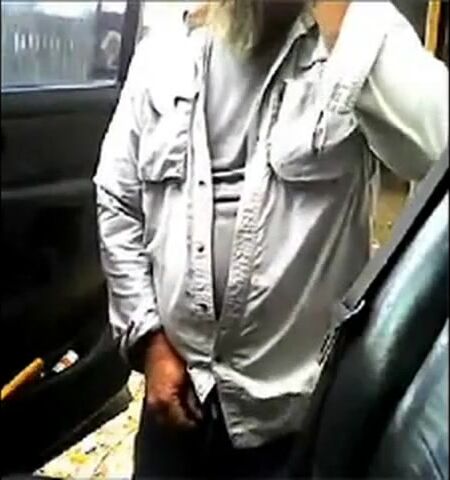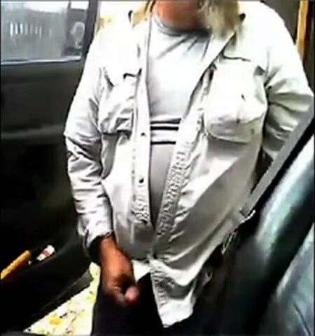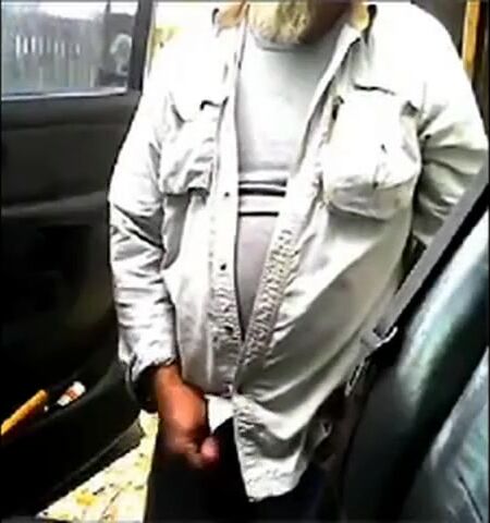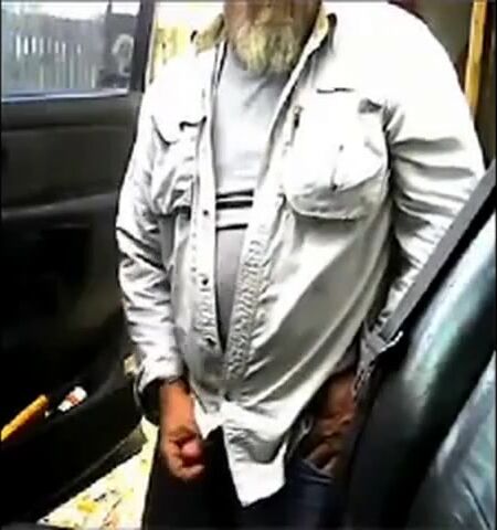 Mature beard dad jerks his cock by his truck outside