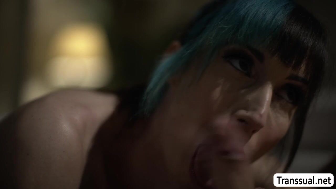 MILF tranny stepmom Melanie Brooks and her stepson Tony Sting are kissing each other on couch.After that,she throats stepsons big cock passionately and in return,her stepson bareback fucks her tight ass so deep and hard.