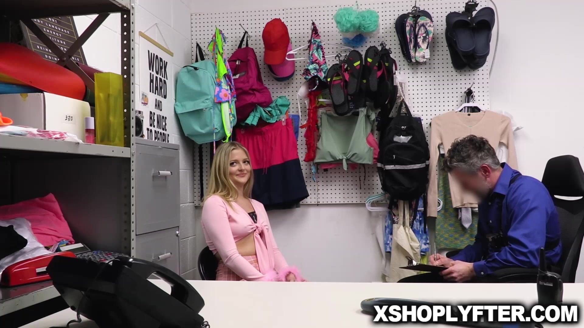 Troublesome teen Jill Taylor shoplifts again and thought that she will get her way, but this time loss prevention officer Mike Mancini will not let her go and punish her for what she deserves by fucking her hard.