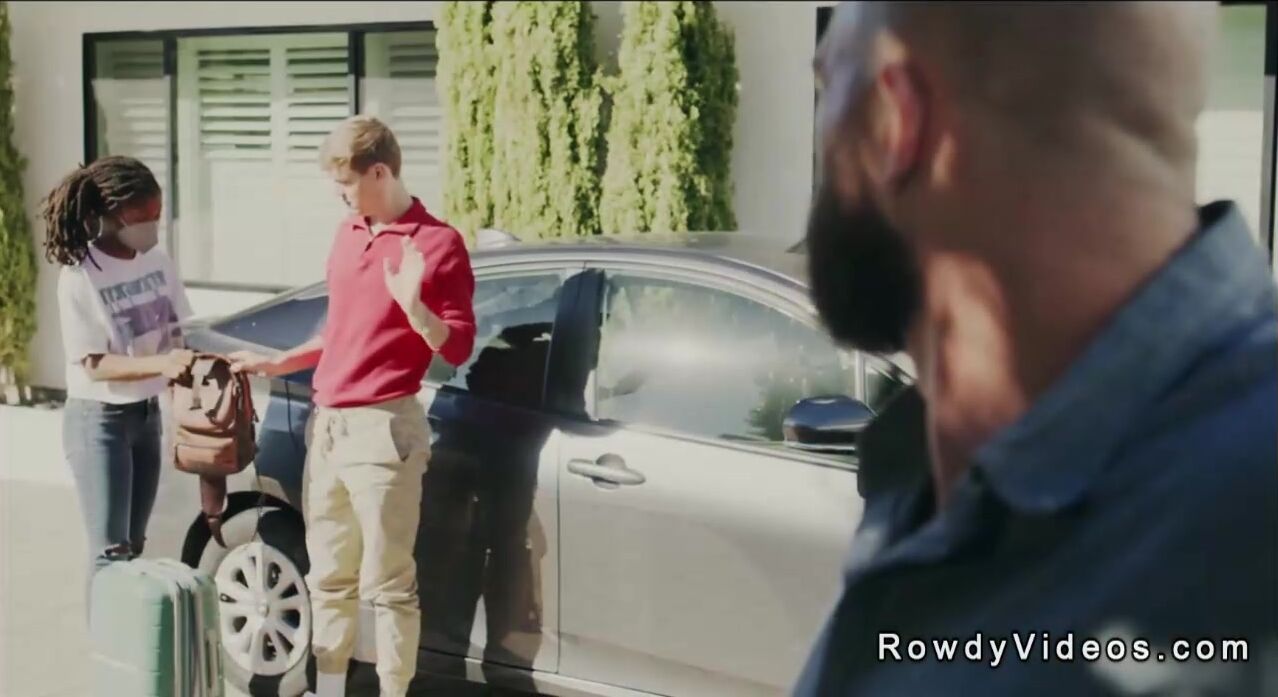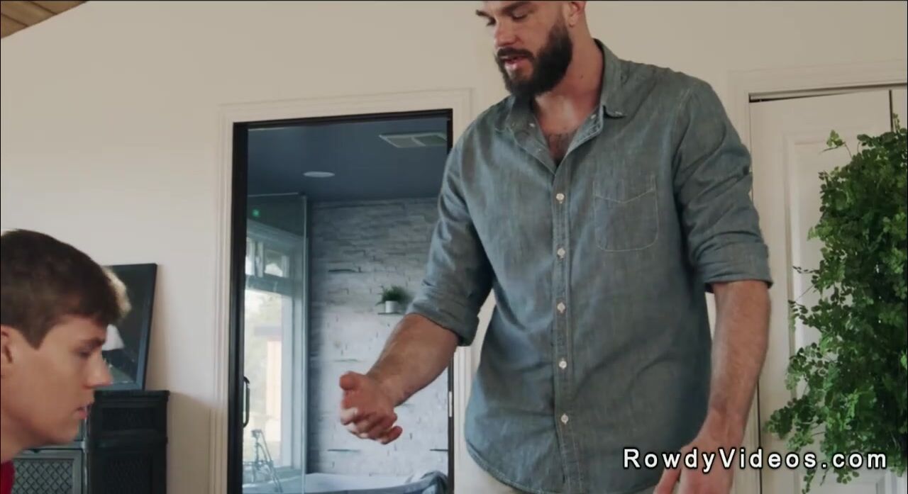 Spoiled and entitled behavior twink Jack Bailey is sent to a remediation ranch where huge dick cowboy Cliff Jensen anal fucks him in bald ass on the sofa