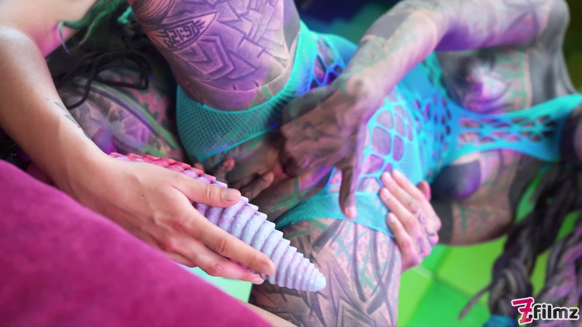 First a little fingering action to get Anuskatzz ready for her holes to get filled. Then Illuz puts her extra thick strapon to work!