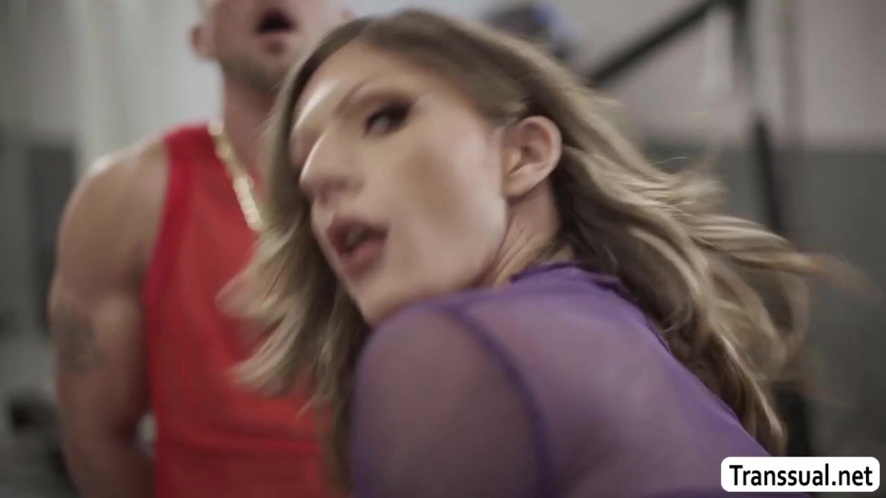 Tranny babe rides gym instructors cock while friend is watching