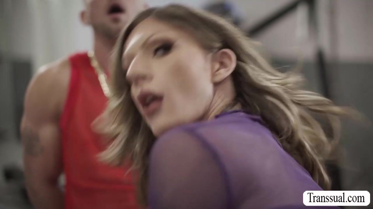 Sexy ladyboy Jade Venus caught Whitney Wright sucking the cock of gym instructor Roman Todd.She gets mad and she ties up Whitney and lets her watch while shes sucking Romans big cock.After that,she lets him fuck her wet ass so hard.