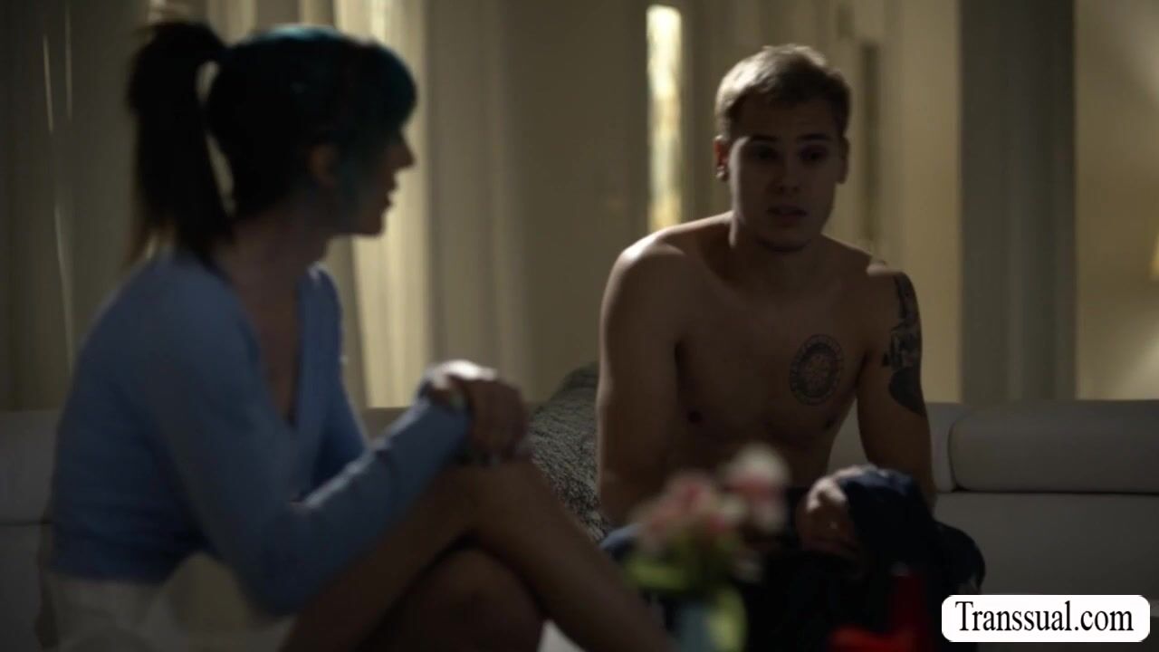 Huge tits TS stepmom is kissing her handsome stepson on her bed.After that,she throats his hard big cock passionately and in return,she lets her stepson bareback fuck her tight wet ass so deep and fucking hard.
