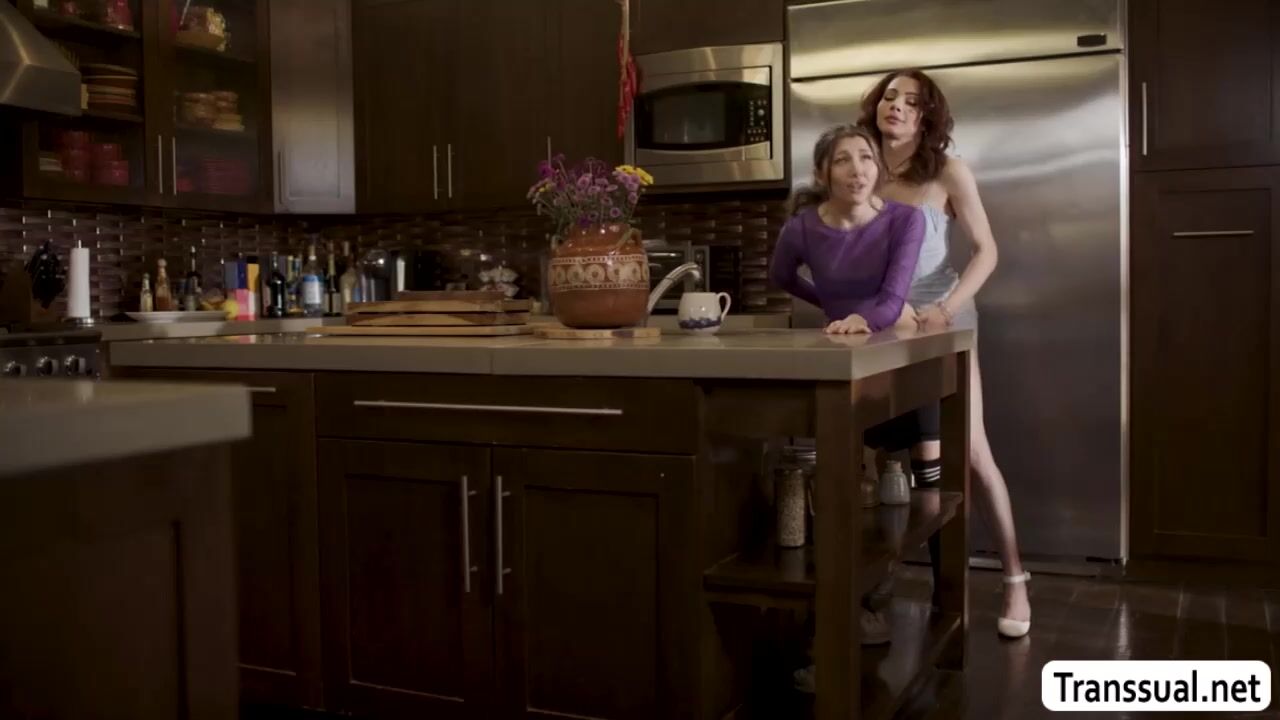 Slut Maya Woulfe and TS Ariel Demure are fucking in he kitchen and suddenly Mayas boyfriend propose to her.They stop fucking buy,Ariel doesnt happy about it so she sucks the big cock of Mayas boyfriend and they got caught red handed.