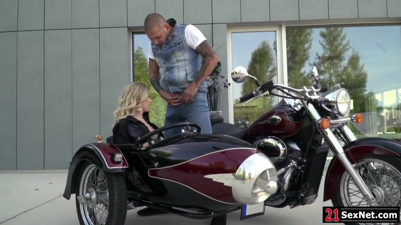Blonde Madison McQueen is teasing her guy Thomas Stone after riding on his bike.She pulls her pants down and starts kissing him.The guy removes her panties and licks her cunt from behind.The russian babe gives him blowjob before they start fucking.