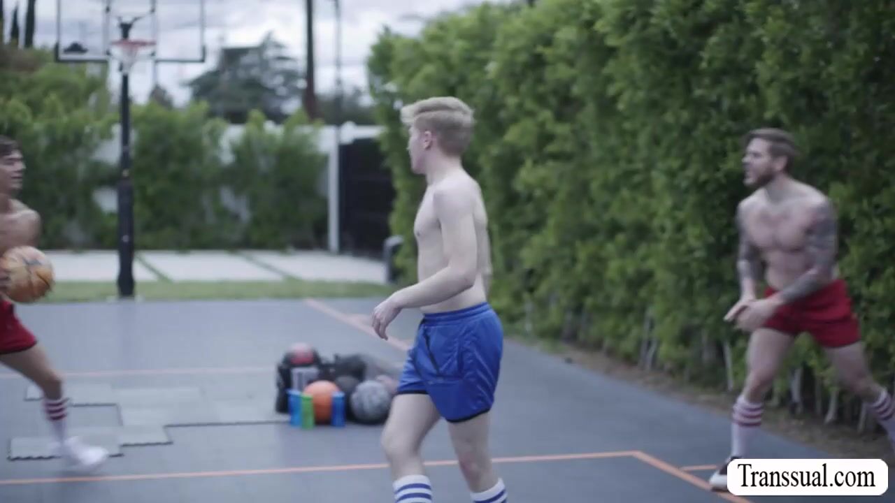 Trans basketball referee Eva Maxim lets the two handsome player get naked and she then throat their hard big cocks passionately.In return,the player starts fucking her tight wet asshole so deep and fucking hard.