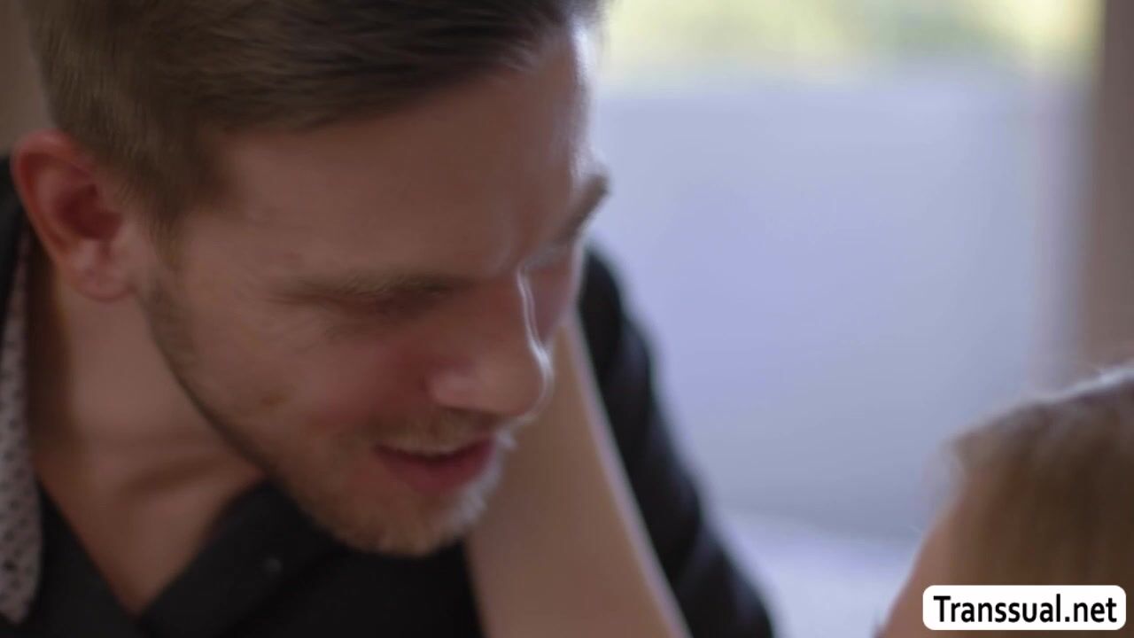 Adorable TS Crystal Thayer is taking a nap on her bed and her husband arrives and they start kissing each other.After that,she throats his hard big cock passionately and in return,her husband bareback fuck her ass gently.