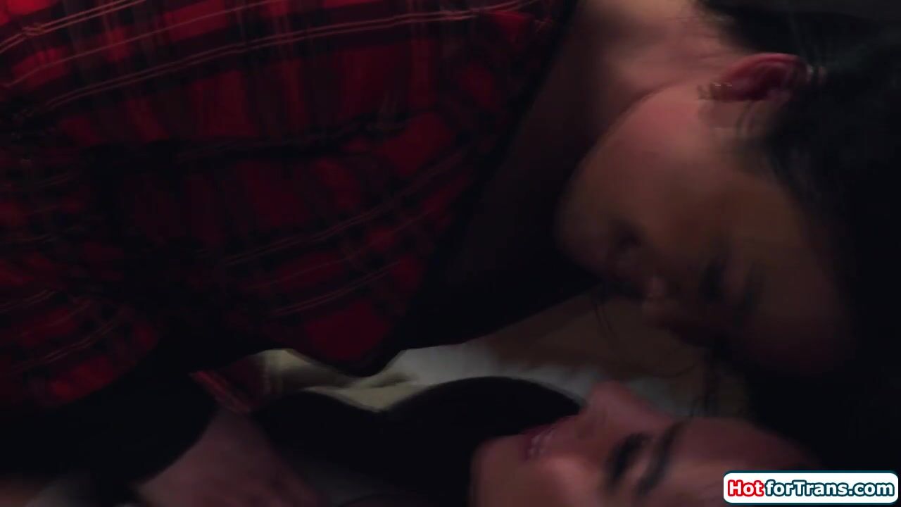 Shemale Kasey Kei and her petite asian gf Lulu Chu are so cold.They light up the fireplace and start having sex.The small tits tgirl is sucked off.The trans eats out her girlfriends pussy.All wet Lulu enjoys when the ts dick slides into her snatch