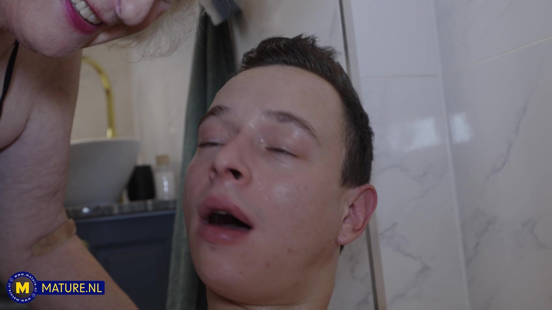Nikki Nuttz (27), Noretta (72) - Toyboy loves fucking his shaved 72 year old stepgrandma Noretta on her couch. Blowjob, Cum, Facial, Pantyhose, Hardcore, Old
