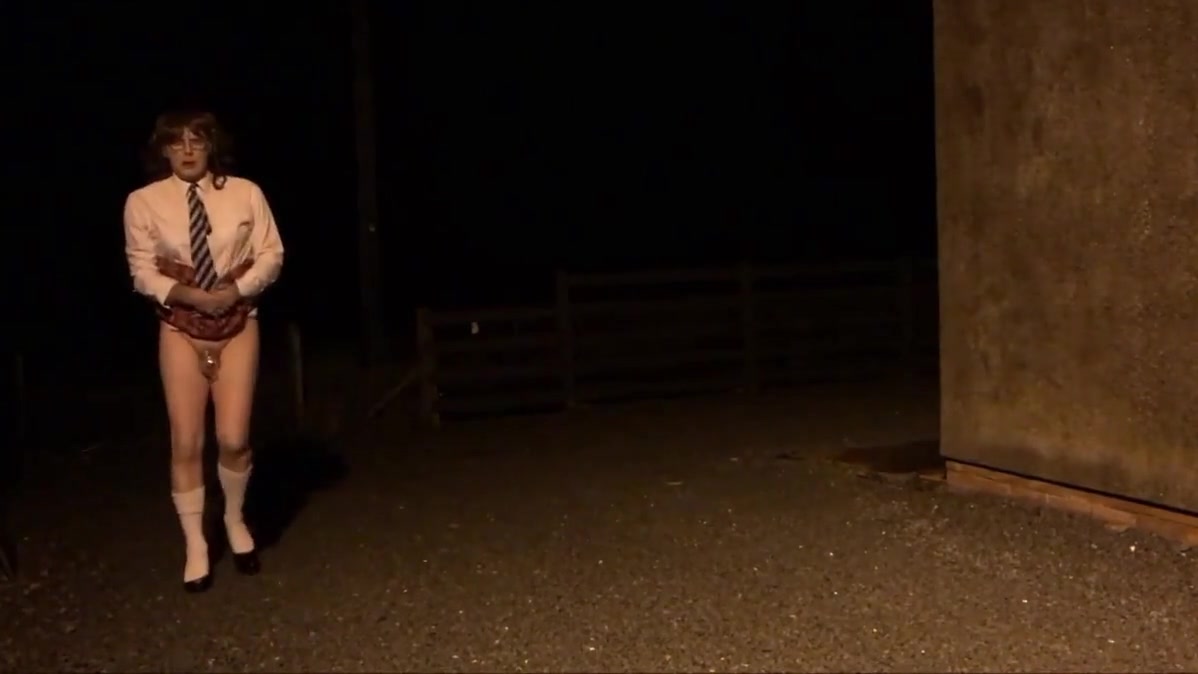 My sissy kathy was instructed to put on his school uniform on and pose for me outdoors with his chastity showing, look at the panic on his face when he hears his neighbour.