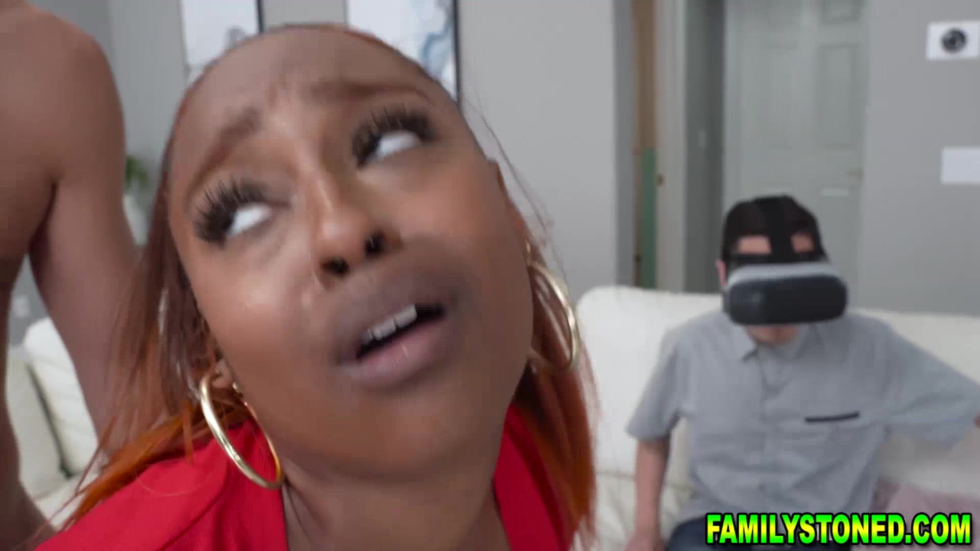 Juan is so obsessed with his new VR headset that he doesnt even pay attention to his girlfriend Destiny Bored out of her mind she peeks at Dans room Juans stepbrother The boy is having a chill jerk off session a picture that gets Destiny all horned up