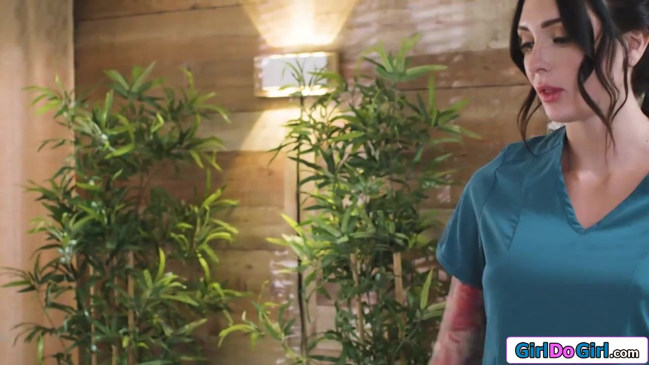 On the final day of their parlor the two masseuses decide to go nasty.The lesbians kiss and suck on each others boobs.The big tits tattooed brunette rims her blonde colleague and sucks on her clit.After she got asslicked shes anal fucked by a strapon